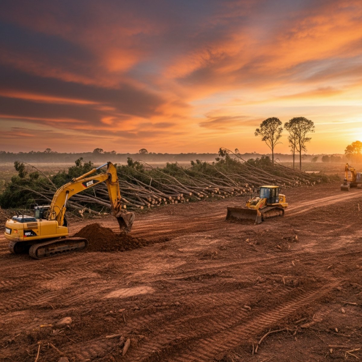Full-scale clearing of trees, brush, and debris to prepare land for new construction, farming, or landscape development projects.