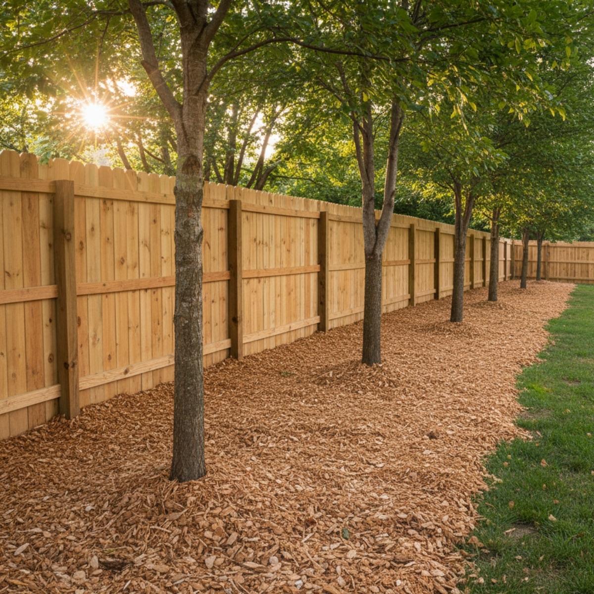 Custom fence installation and premium wood chip delivery for landscaping, property borders, and ground coverage with natural appeal.