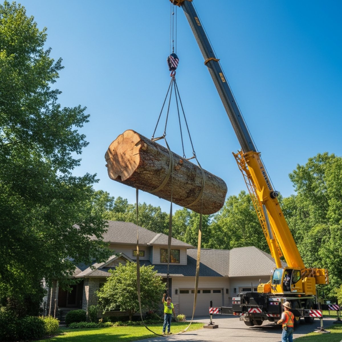 Heavy lifting and tree removal support using modern cranes operated by licensed professionals for precise and safe operations.